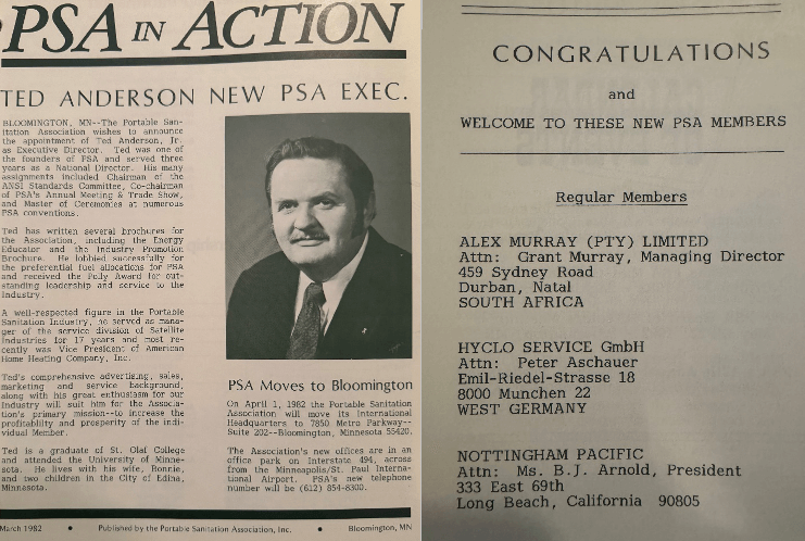 In researching the PSAI archives from our founding in 1971, the first instance of the portable sanitation industry in South Africa is found in the March 1982 “PSAI in Action” Newsletter: